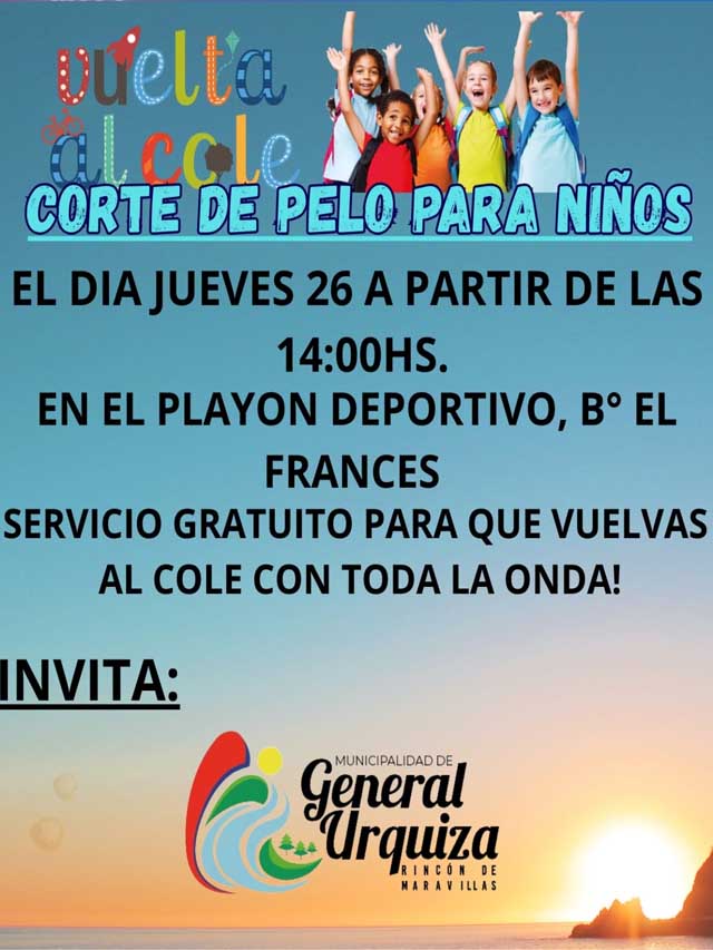 AGENCIA MISIONES.UNO | La Municipalidad de General Urquiza invita a los vecinos del barrio El Francés a participar de una jornada de corte de pelo gratuito para niños, que se realizará el jueves 26 desde las 14 horas en el playón deportivo.